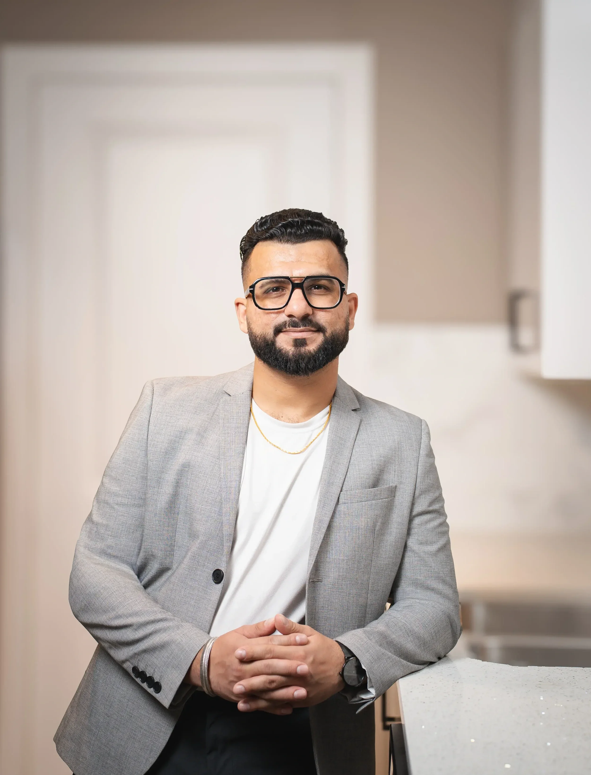 Hero portrait (listing kitchen): credibility + approachability → Website hero, LinkedIn, GBP